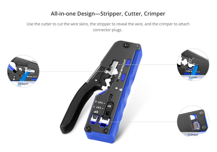 Πρέσα ακροδεκτών δικτύου, κατάλληλη για πτύχωση, απογύμνωση και κοπή βυσμάτων RJ12 (6P) και RJ45 (8P).