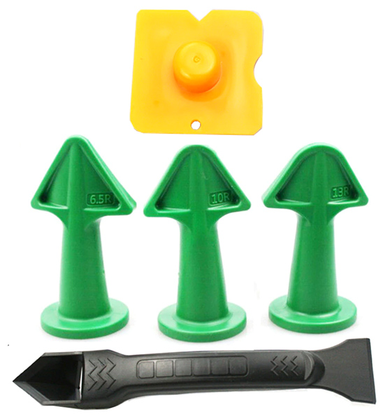 Σετ για την επίστρωση, ευθυγράμμιση και αφαίρεση της σιλικόνης. Το σετ αποτελείται από 3 ακροφύσια για την επίστρωση της σιλικόνης, 1 εργαλείο για την ευθυγράμμιση της σιλικόνης και 1 ξύστρα αφαίρεσης της σιλικόνης.
