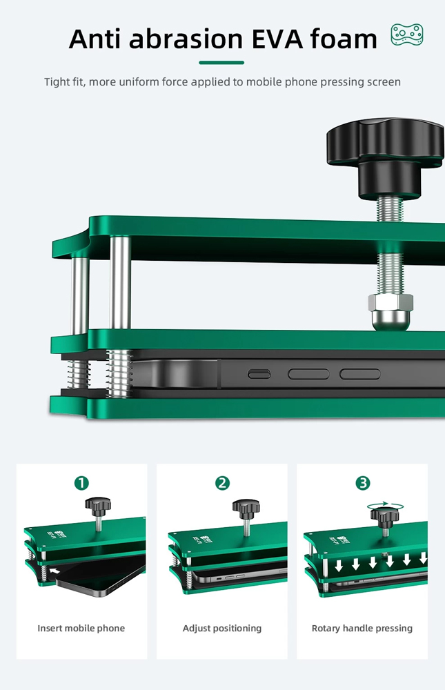 Σφιγκτήρας κόλλησης της Best για την επισκευή οθόνης κινητού. Διαθέτει μεγάλη επιφάνεια για οθόνες έως και 8.5″ και αντικραδασμικό στρώμα από υλικό EVA, για την προστασία του κινητού.