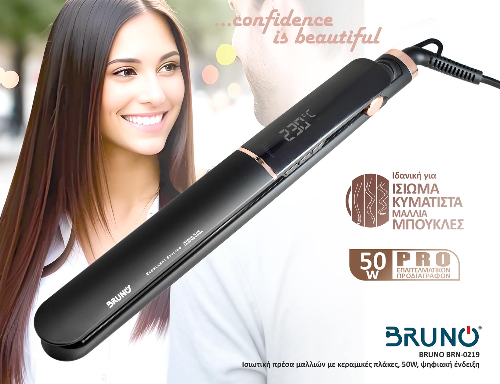 Η ισιωτική πρέσα μαλλιών BRUNO BRN-0219, είναι ιδανική για ίσιωμα μαλλιών και χτενίσματα με σπαστά-κυματιστά μαλλιά ή μπούκλες.