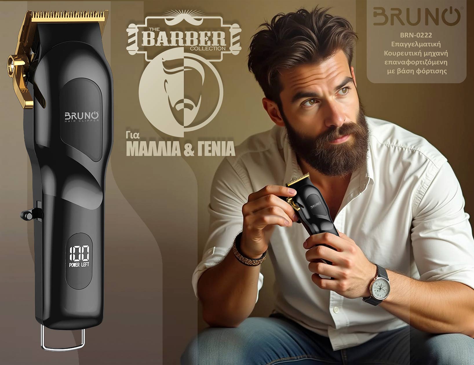 Η επαναφορτιζόμενη κουρευτική μηχανή BRUNO BRN-0222, είναι η απόλυτη λύση για κούρεμα ή τριμάρισμα σε μαλλιά και γένια.