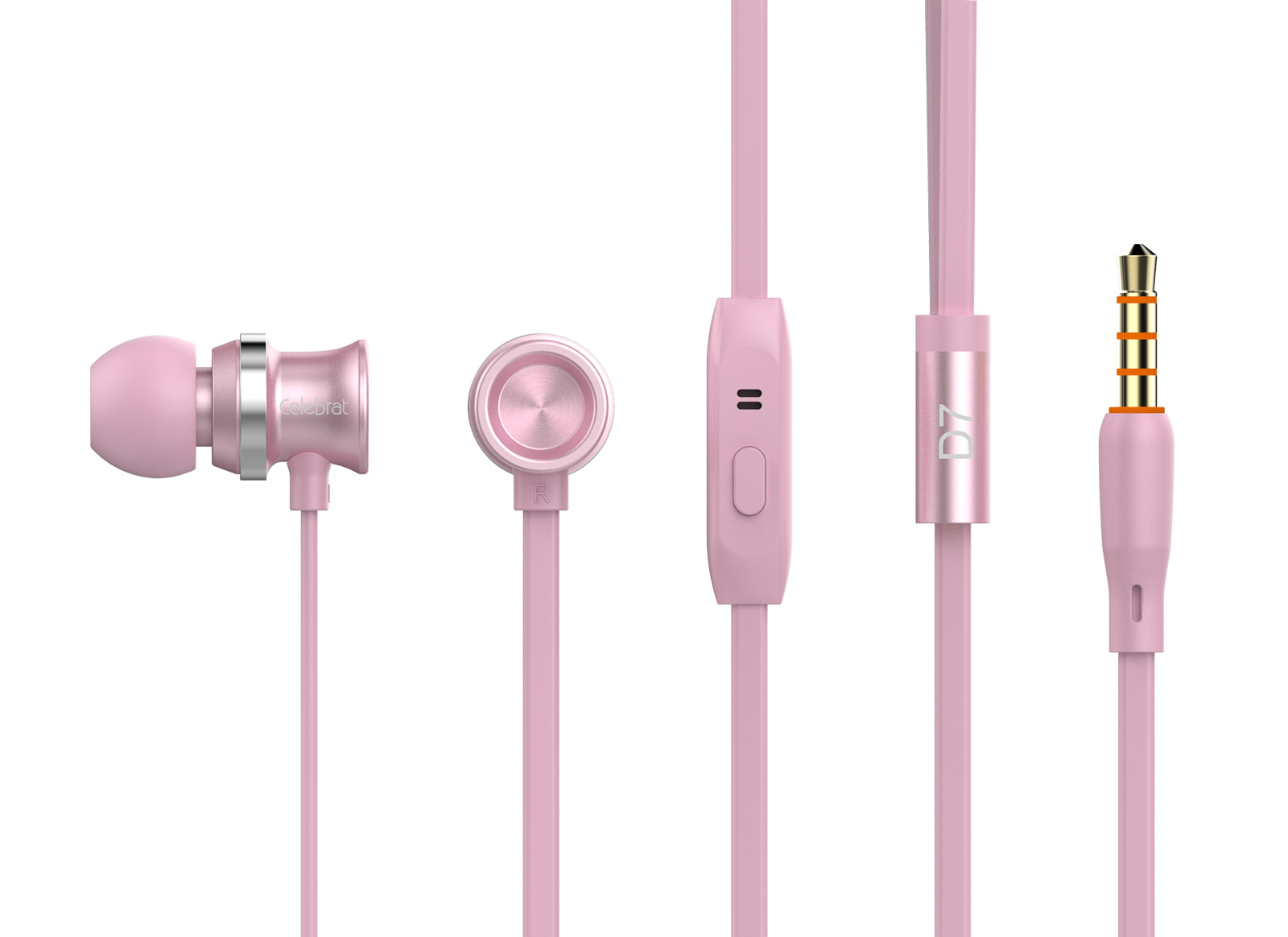 CELEBRAT earphones με μικρόφωνο D7, 3.5mm σύνδεση, Φ10mm, 1.2m, ροζ