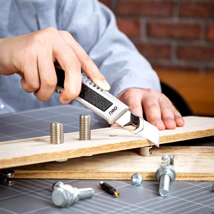 DELI μεταλλικό κοπίδι με ασφάλεια DL4255, 18mm, ασημί