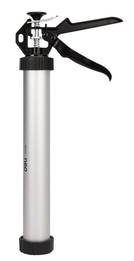 Πιστόλι σιλικόνης Deli κλειστού τύπου, κατασκευασμένο από ατσάλι και αλουμίνιο υψηλής ποιότητας και με εργονομική λαβή.