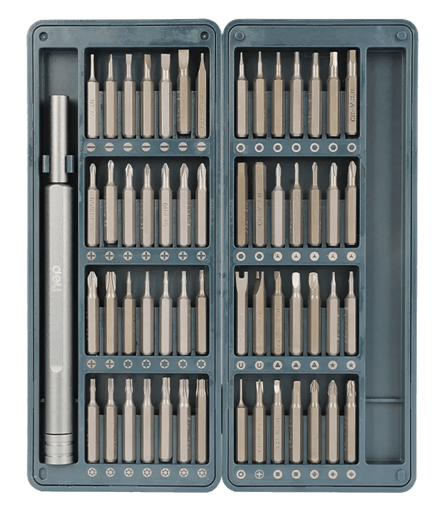 Σετ της Deli το οποίο αποτελείται από 1 κατσαβίδι και 56 διαφορετικές μύτες κατσαβιδιού.