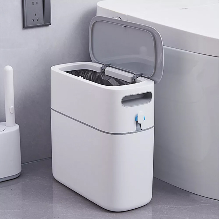 Κάδος απορριμμάτων με χωρητικότητα 12 λίτρα από την ECOCO. Το πάνω μέρος του με το καπάκι αποσπάται από τον κάδο, ενώ, διαθέτει και γάντζο, που διευκολύνει την αφαίρεση της σακούλας. Ανοίγει εύκολα, πιέζοντας με το δάχτυλο σας το καπάκι προς τα κάτω.