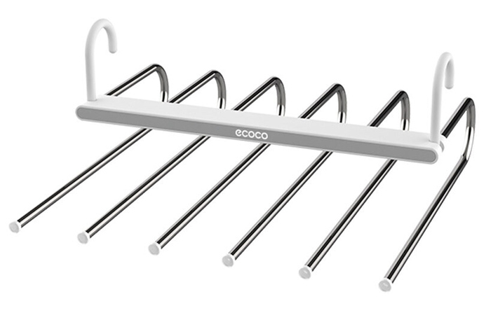 Αναδιπλούμενη κρεμάστρα ντουλάπας 6 θέσεων της Ecoco, ιδανική για την οργάνωση παντελονιών, πετσετών, φουλαριών κ.λπ. Χάρη στον έξυπνο σχεδιασμό της, η τοποθέτηση της μπορεί να γίνει είτε κάθετα είτε οριζόντια, ανάλογα με τις ανάγκες σας.