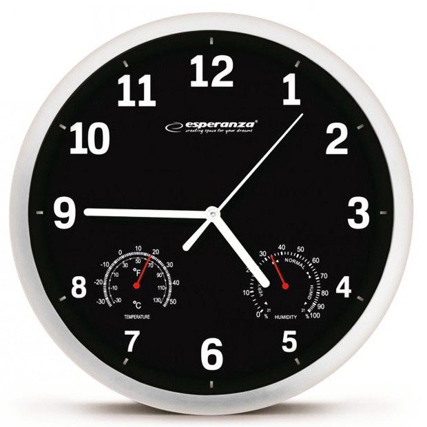 ESPERANZA Ρολόι τοίχου Lyon EHC016K, θερμόμετρο/υγρόμετρο, 25cm, μαύρο