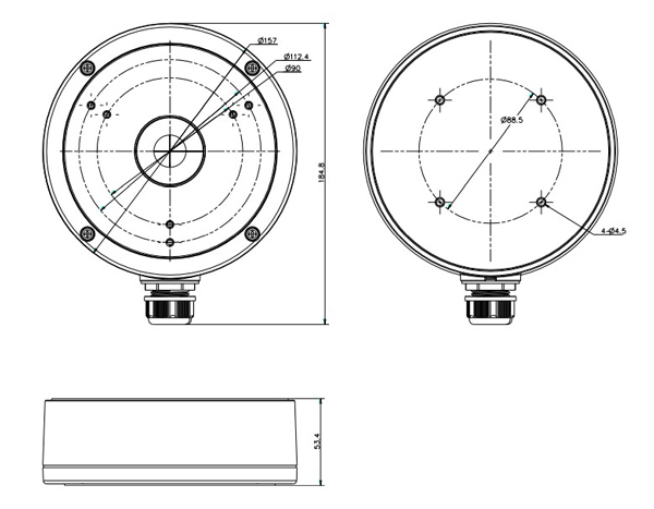 Βάση κάμερας με οπή για καλώδιο της HIKVISION, κατασκευασμένη από ανθεκτικό κράμα αλουμινίου.