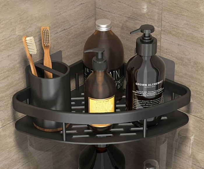 Γωνιακό ράφι τοίχου HOME USE, ιδανικό για την αποθήκευση μικροαντικειμένων στο μπάνιο ή την κουζίνα.