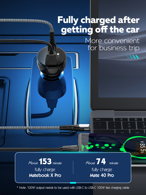 LDNIO φορτιστής αυτοκινήτου C101 με καλώδιο, USB/USB-C, 100W PD, μαύρος