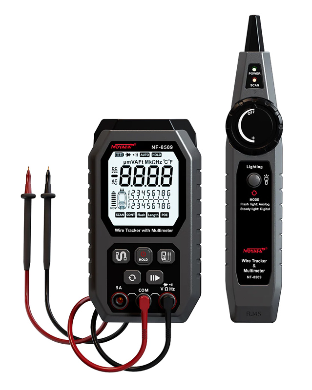 Το NF-8509 είναι ένα αξιόπιστο εργαλείο με πολλαπλές λειτουργίες. Σας επιτρέπει να εντοπίζετε τα καλώδια, το μήκος τους, την ακολουθία γραμμής, την τάση και την αντίσταση του ηλεκτρικού κυκλώματος, την υποστήριξη προτύπων PoE και πολλά άλλα.