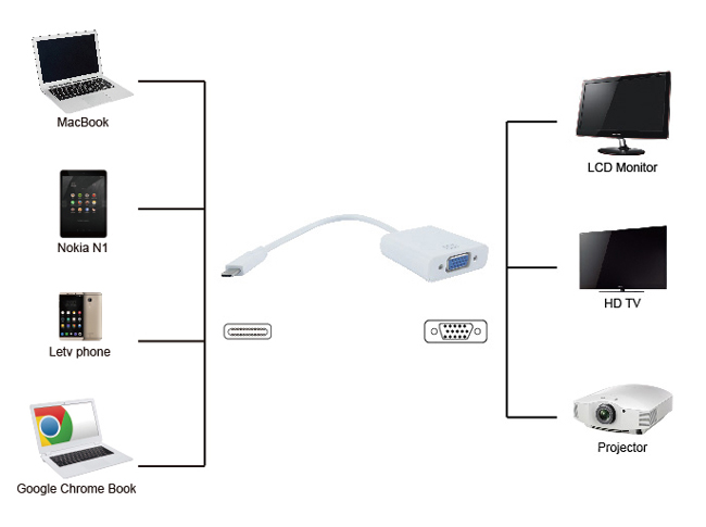 Converter για σύνδεση συσκευών με USB Type-C έξοδο σε οθόνες και προτζέκτορες με VGA είσοδο.