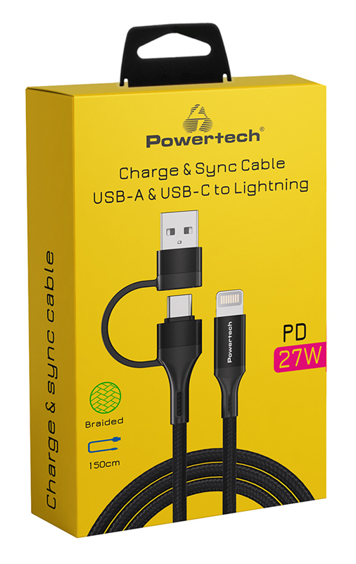 POWERTECH καλώδιο USB & USB-C σε Lightning PTR-0159, PD 27W, copper, 1.5m, μαύρο