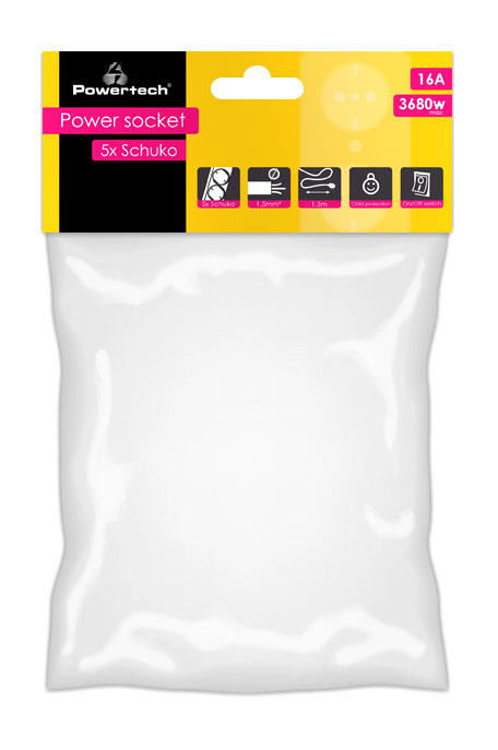 POWERTECH πολύπριζο PT-875, 5x schuko, 16A, 1.5m, μαύρο