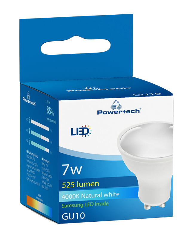 POWERTECH LED λάμπα spot GU10-002, 7W, 4000K, GU10, Samsung LED