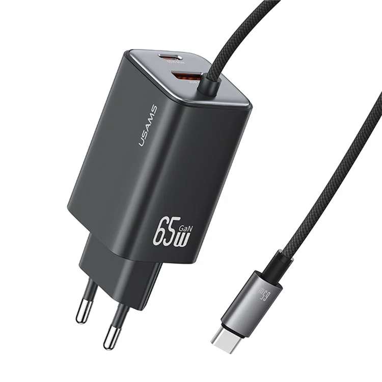 USAMS φορτιστής τοίχου CC266 με καλώδιο, USB & USB-C, 65W, GaN, μαύρος